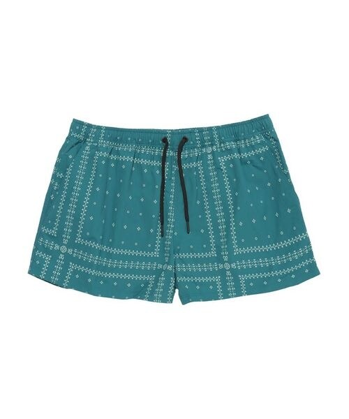 夏らしい柄で暑いシーズンにピッタリなショーツです。撥水性に優れて乾きやすく、ポケットは水抜けがいいメッシュ地なので山でも海辺でも幅広く活躍します。伸縮性のあるプルオンスタイルで着脱しやすいデザインに。リサイクルナイロン100%、PFC(過フッ素化合物類)フリーの耐久性撥水加工で環境にも配慮しました。\nモデル身長:170cm/着用サイズ:M\n特徴:●UPF50 ●ウエストにドローコード ●両サイドのポケット ●右後ろのセキュリティポケット ●右後ろにロゴラベル\n\n/ 品番:OL6397−316