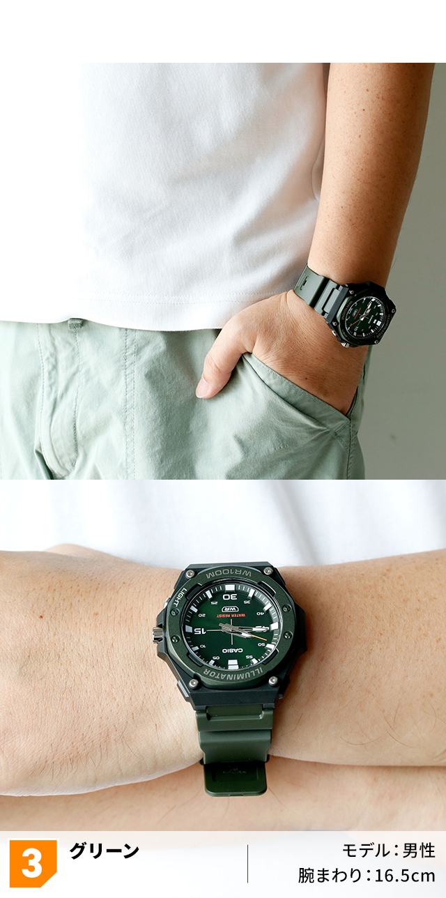 7年保証キャンペーン カシオ CASIO スタンダード チプカシ クオーツ 海外モデル メンズ 腕時計 MW-620H STANDARD アナログ ブラック ネイビー カーキ 選べるモデル ◆耐久性に優れた、輝きのある時計です。ワイドケースには、視認性の高いバーインデックスマークが付いており、読みやすい時計となっています。サンレイダイヤルはベゼルのメタリック仕上げと相まって、大胆でタフなデザインに仕上がっています。デザインだけでなく機能も充実しており、100メートルまでの防水性、LED バックライトなど、最も活動的な日々に必要な機能をすべて備えています。アウトドアシーンやカジュアルスタイルにおすすめです。 MW-620H-1AVDF MW-620H-2AVDF MW-620H-3AVDF 日本未発売モデル