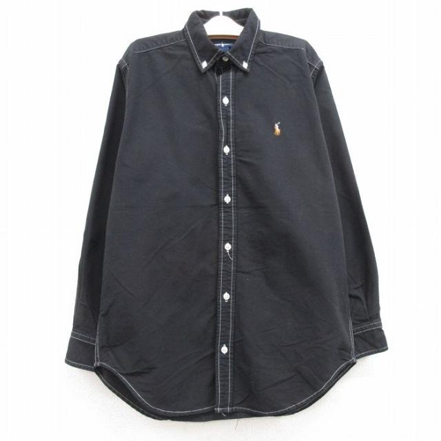 【商品名】 古着 ラルフローレン 長袖 ブランド シャツ キッズ ボーイズ 子供服 90年代 90s ワンポイントロゴ オックスフォード コットン ボタンダウン 黒