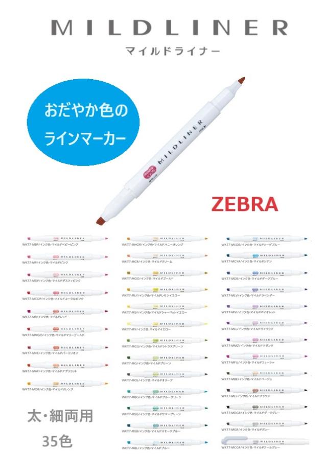 ゼブラ マイルドライナー WKT7 ラインマーカー 100円 おだやか色 優しい色合い 35色 単色1本 バラ ノート メール便OK