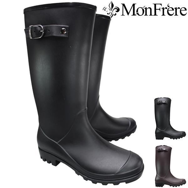 モンフレール LB8121 ブラック ブラウン Sサイズ〜Lサイズ レディース レインシューズ ロングレインブーツ 雨靴 長靴 婦人用 サイドベルト