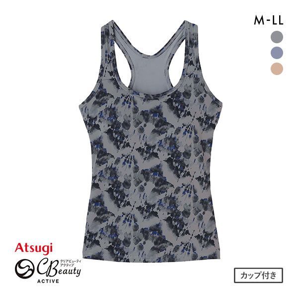 アツギ ATSUGI クリアビューティアクティブ カップ付きインナー タンクトップ ボタニカルニュアンス柄 吸汗速乾 レディース スポーツウェ