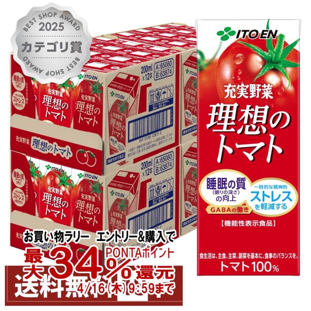 【お買い物ラリー 最大34%還元】[セット]伊藤園 充実野菜 理想のトマト 200ml×48本[2ケース 24本×2個]紙パック 機能性表示食品[代引き不可][送料無料]※他商品との同梱不可(6052939-set1)