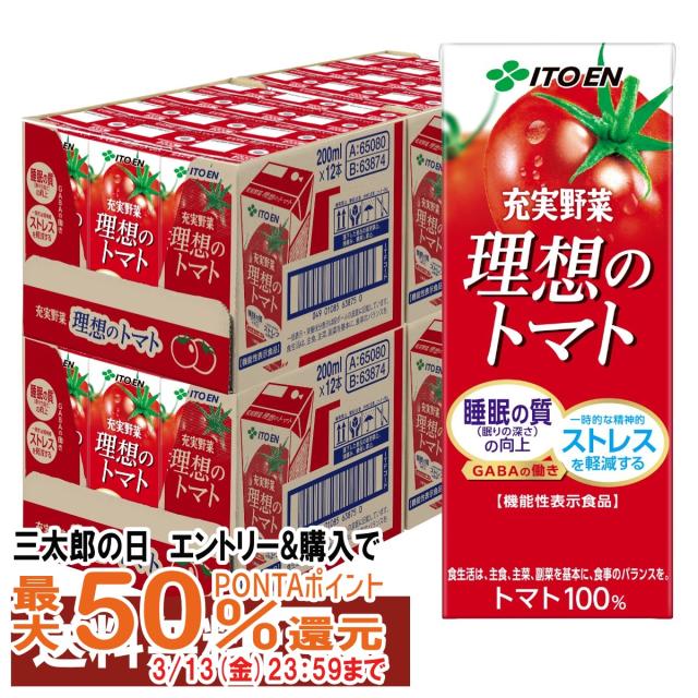 【三太郎の日 最大50%還元】[セット]伊藤園 充実野菜 理想のトマト 200ml×48本[2ケース 24本×2個]紙パック 機能性表示食品[代引き不可][送料無料]※他商品との同梱不可(6052939-set1)
