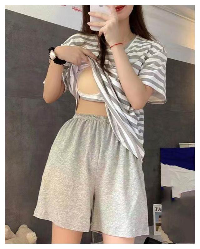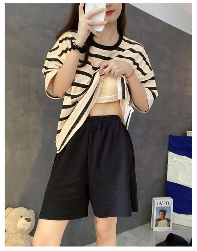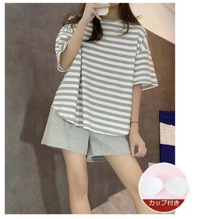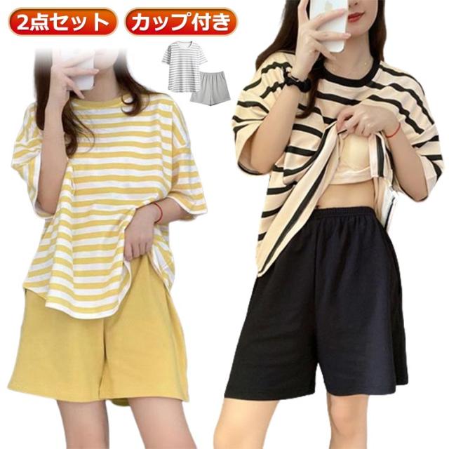 パジャマ レディース 上下セット ショートパンツ カップ付き ルームウェア レディース レディース ねまき 寝間着 寝巻き セットアップ ショートパンツ ナイトウェア ボーダー柄 ママ 部屋着
