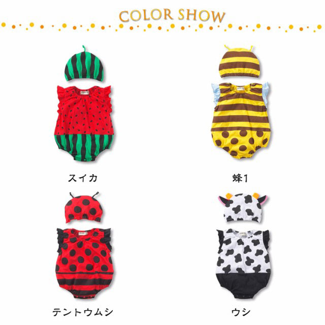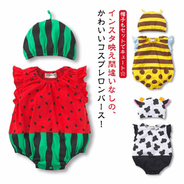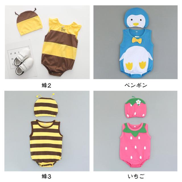 ロンパース 女の子 帽子付き インスタ映え カバーオール 半袖 仮装 ハチ かわいい 男の子 ノースリーブ 撮影 ボディースーツ ベビー キャップ 90 スイカ 夏 コスプレ 水着 赤ちゃん 幼児用 子供 ベビー服 いちご 股下スナップボタン 出産祝い 送料無料 73 80 春