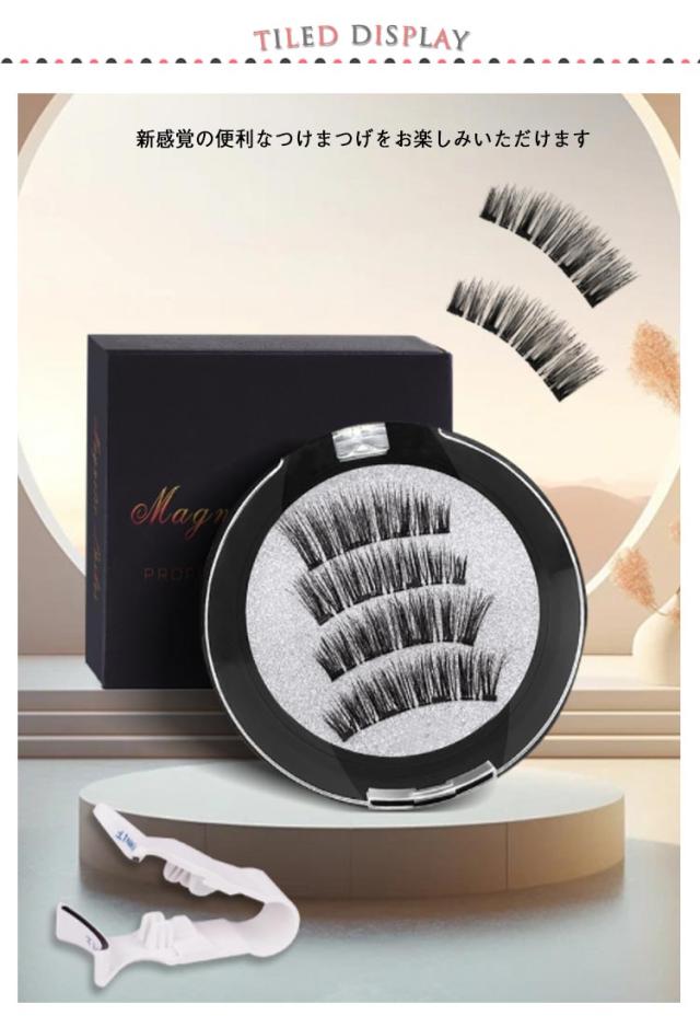 | 3セット入り 磁力でしっかりくっ付くのでグルーは不要! 新感覚の便利なつけまつげをお楽しみいただけます 簡単に太く、長く、華やかなまつ毛に変身することが出来、着け心地も快適 | |
