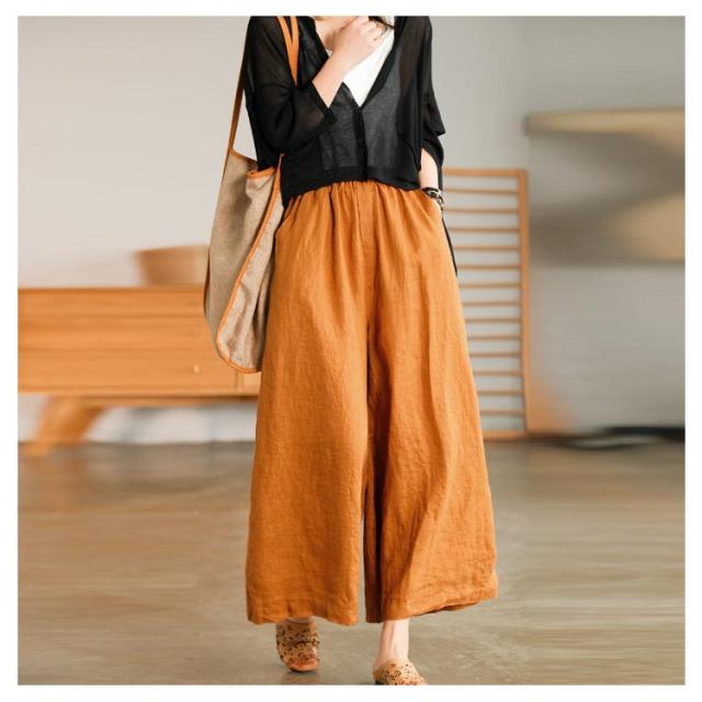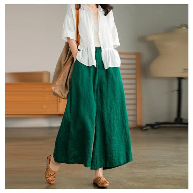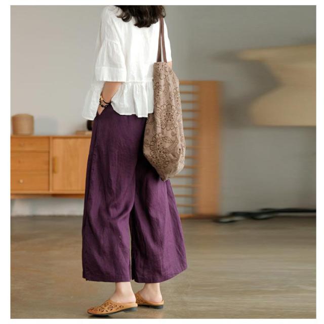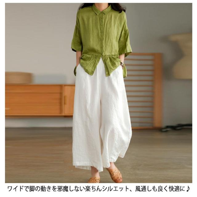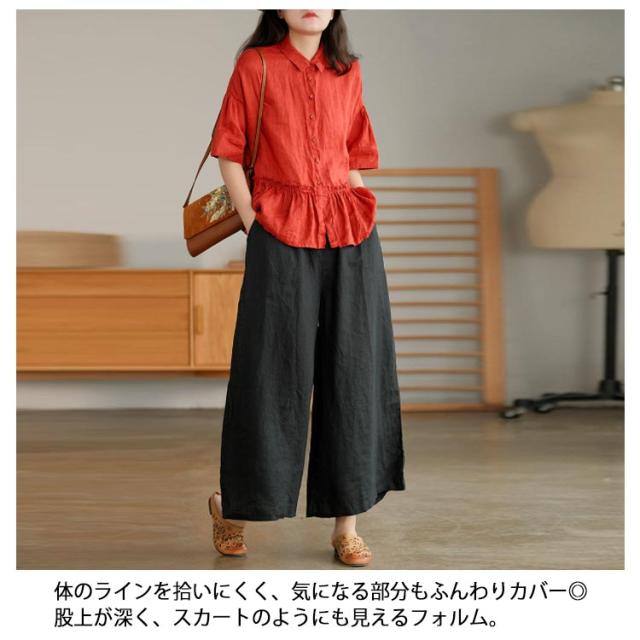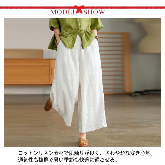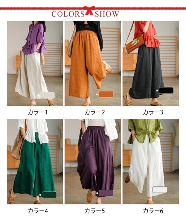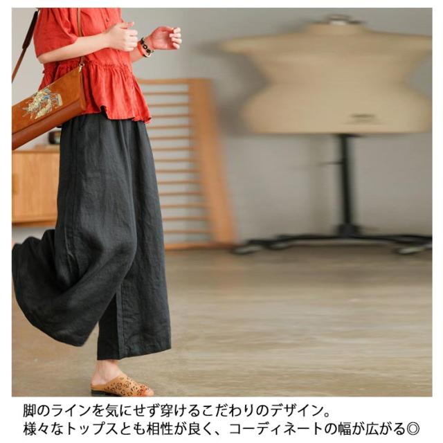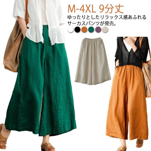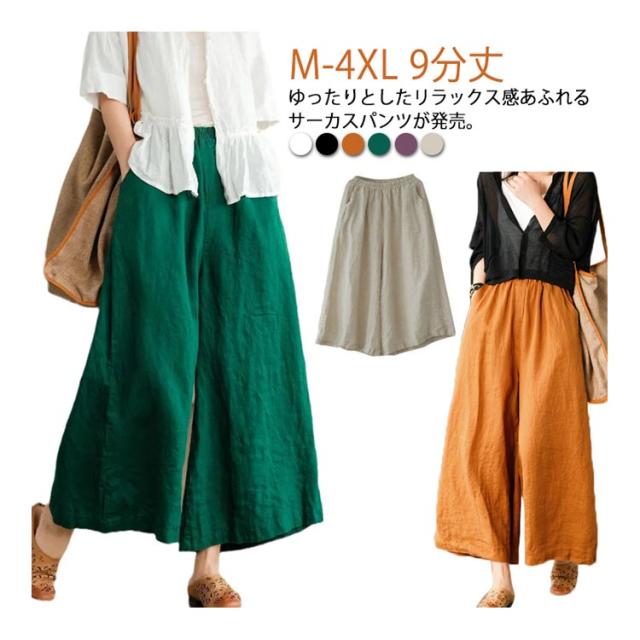 ガウチョパンツ スカーチョ スカンツ レディース ウエストゴム ボトムス ロングパンツ パンツ 九分丈 送料無料 フレアパンツ ワイドパンツ リネン 麻 コットン ゆったり ポケット 9分丈 無地 春 通勤 通学 オフィス カジュアル きれいめ おしゃれ シンプル リラックス 綿