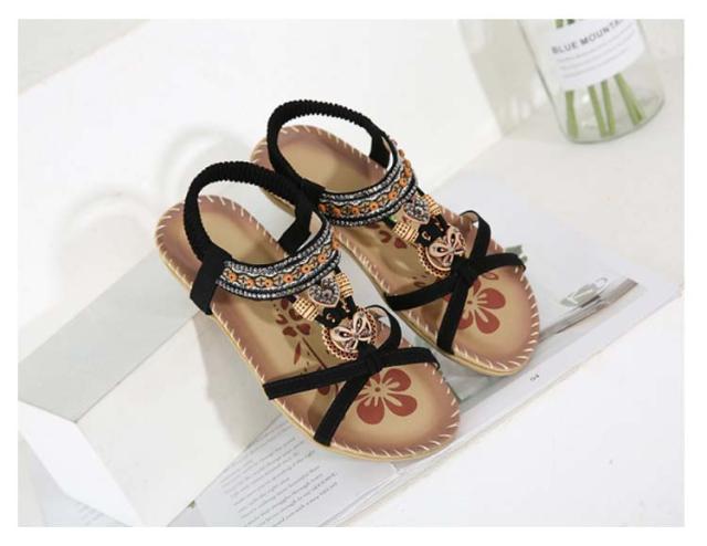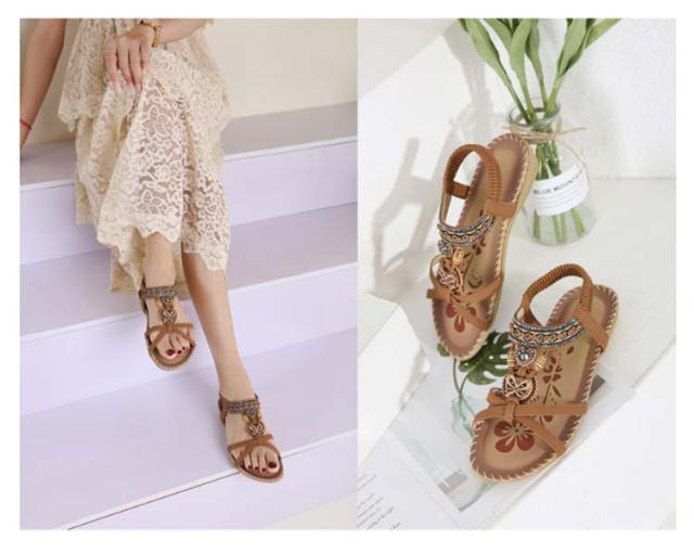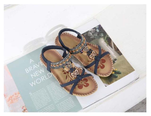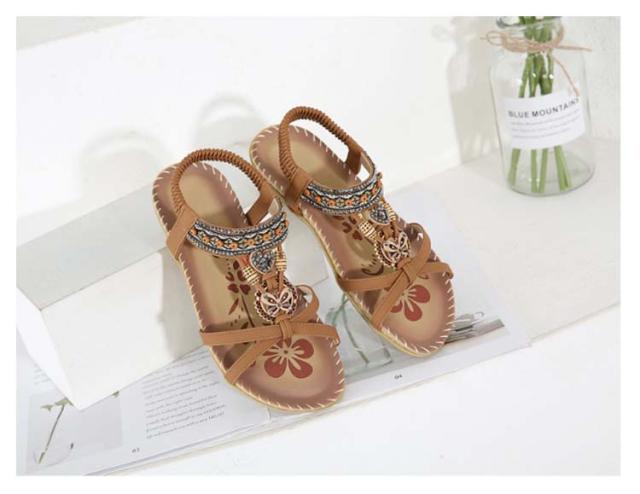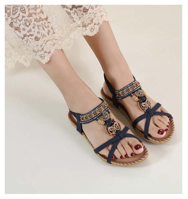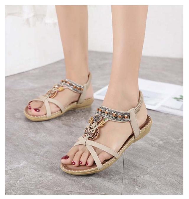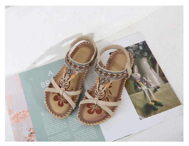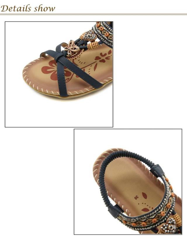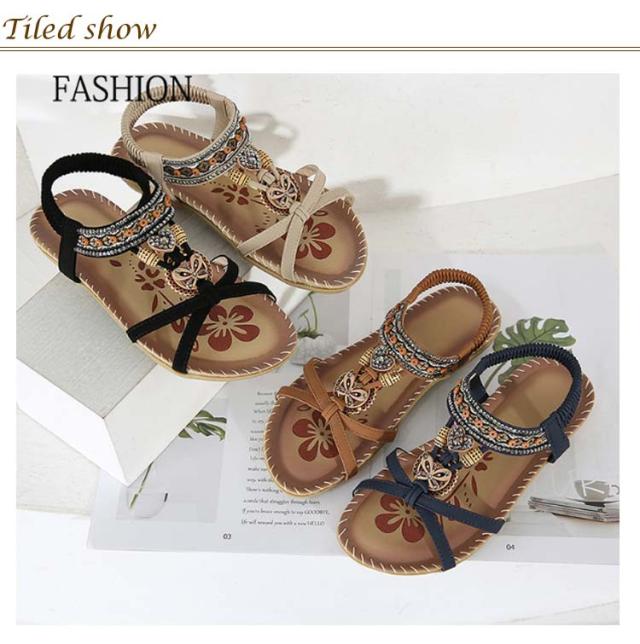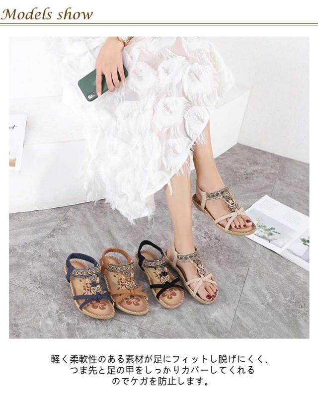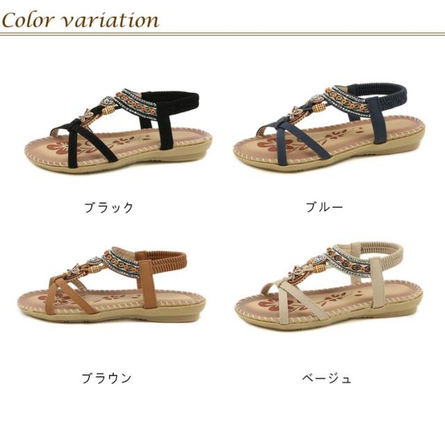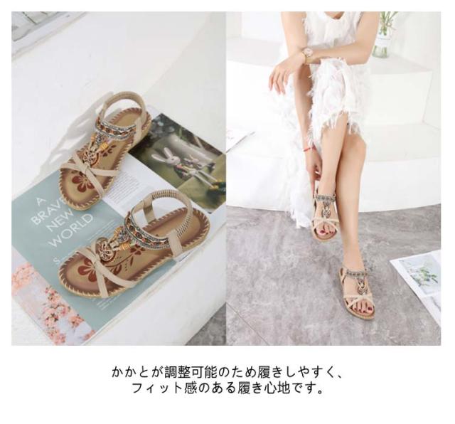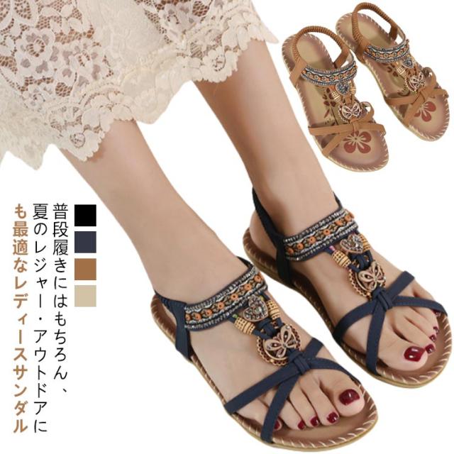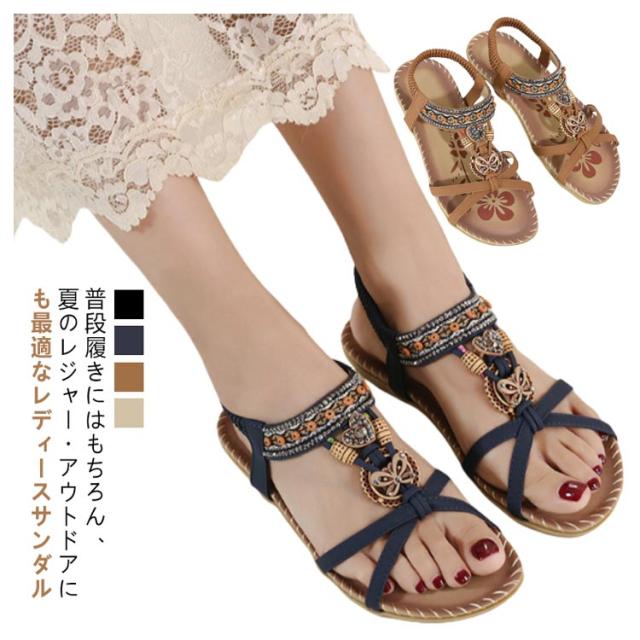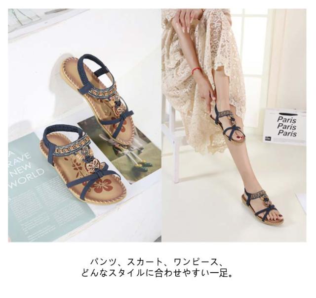 サンダル フラット ゴムサンダル レディース エスニック ストラップサンダル ビジュー ローヒール おしゃれ ボヘミア 美脚 歩きやすい ぺたんこ カジュアルサンダル 疲れない 滑り止め 水遊び 旅行 大きサイズ 小さいサイズ ビーチサンダル