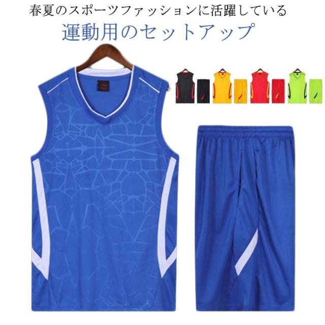 ノースリーブ メンズ 袖なし トレーニングウェア バスケットボールウエア 涼しい 夏 セットアップ スポーツウェア 接触冷感 バスケットボール Tシャツ 上下セット 夏服 ハーフパンツ ジム フィットネス ルームウェア カジュアル 上下セット