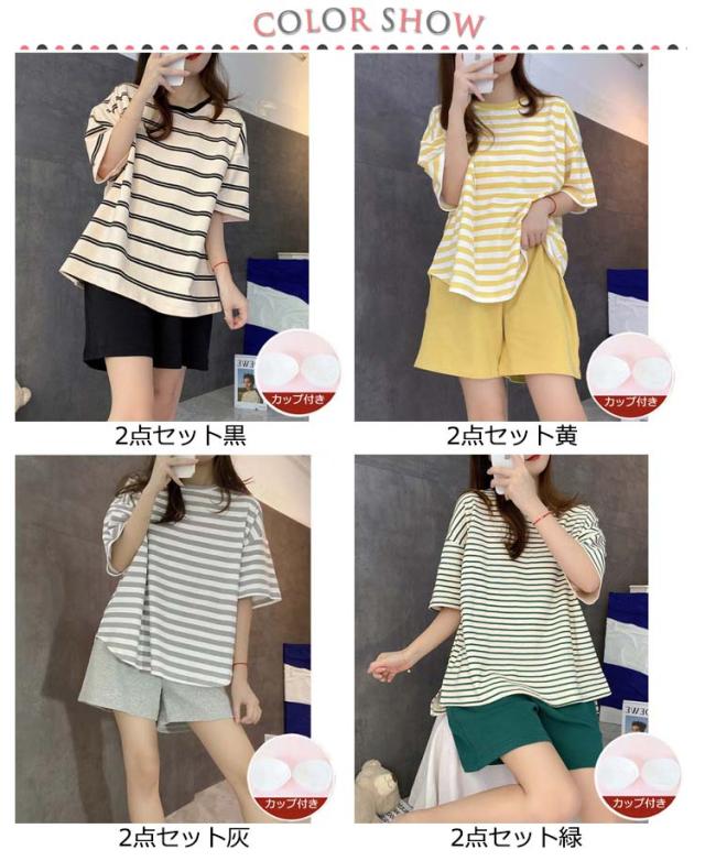 パジャマ レディース 上下セット ショートパンツ カップ付き ルームウェア レディース レディース ねまき 寝間着 寝巻き セットアップ ショートパンツ ナイトウェア ボーダー柄 ママ 部屋着