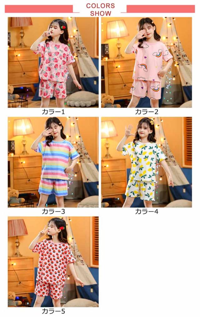 いちご ルームウェア パジャマ 夏 半袖パジャマ キッズルームウェア 半袖 子どもパジャマ セットアップ 夏パジャマ小学生 キッズ服 上下セット 子供服 韓国 ルームウエア 子供用部屋着 かわいい おしゃれ 女の子 いちご柄 部屋着 綿 コットン 可愛い ピンク