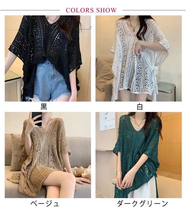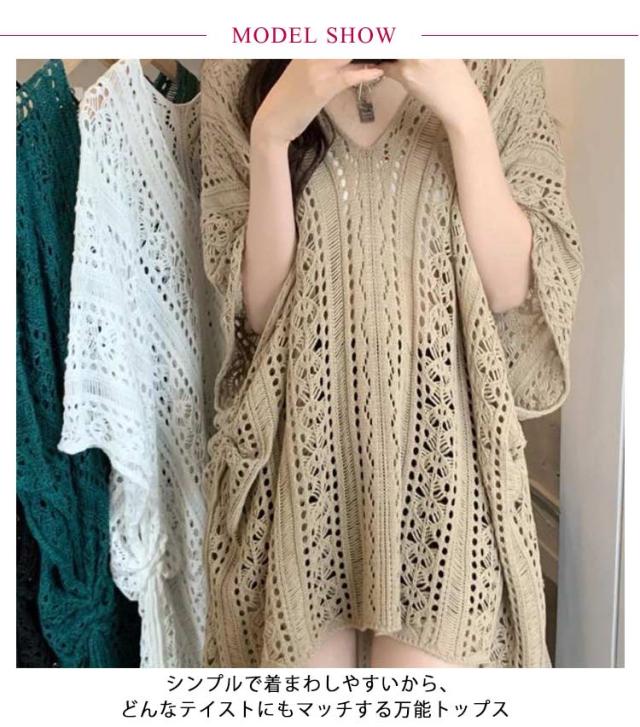 | さらりと心地よい 涼やか 透かし編みサマーニット コーデが一気に垢抜ける☆かぎ編みニットのポンチョ風トップス ゆるっとしたシルエットがルーズなこなれた雰囲気を演出 二の腕を程よくカバーしてくれるフレンチドルマンスリーブが魅力 シンプルで着まわしやすいから、どんなテイストにもマッチする万能トップス | |