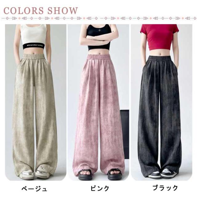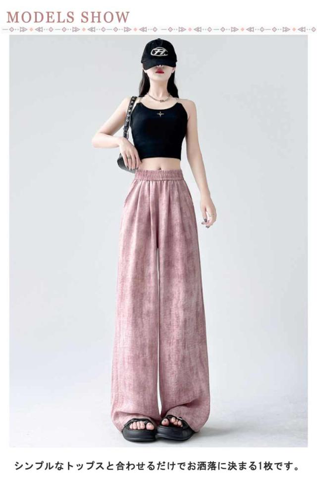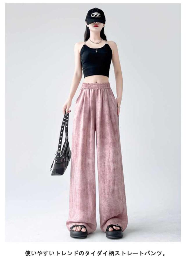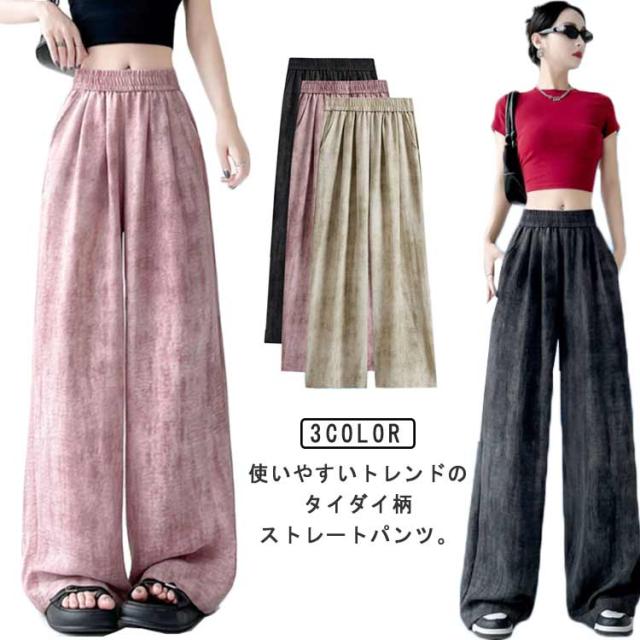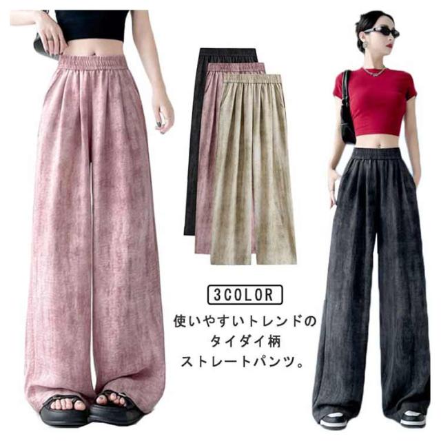 ロングパンツ ストレートパンツ ワイドパンツ タイダイ染め キレイめ リラックスウェア ワイドパンツ イージーパンツ 冷感 レディース 涼しい ウェストゴム 涼感 夏パンツ 薄手 春 夏 軽い エアー 送料無料