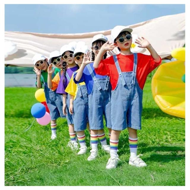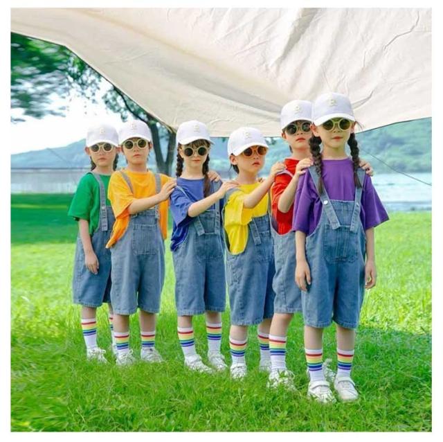 | ダンス、体操、イベントなどのチームウェアとしてオススメ。 発表会や記念写真撮影にピッタリのサロペットパンツ。 こどもをより可愛く映えます。 シンプルでおしゃれなデザイン、シンプルなtシャツと合わせるだけで、デイリーも大活躍できます。 | |
