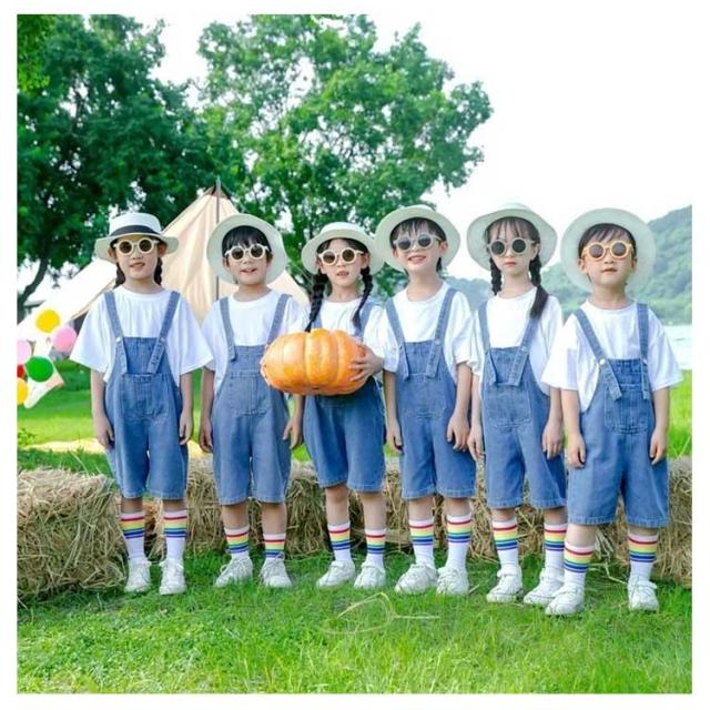 ダンス衣装 キッズ ヒップホップ 半袖 ダボダボ デニムパンツ サロペット 衣装 ダンス ジーンズ 舞台服 オーバーオール ダンス 女の子 男の子 パンツ ズボン ガールズ 幼稚園 小学生 tシャツ 発表会 応援団 練習着 体操服 人気 キッズ