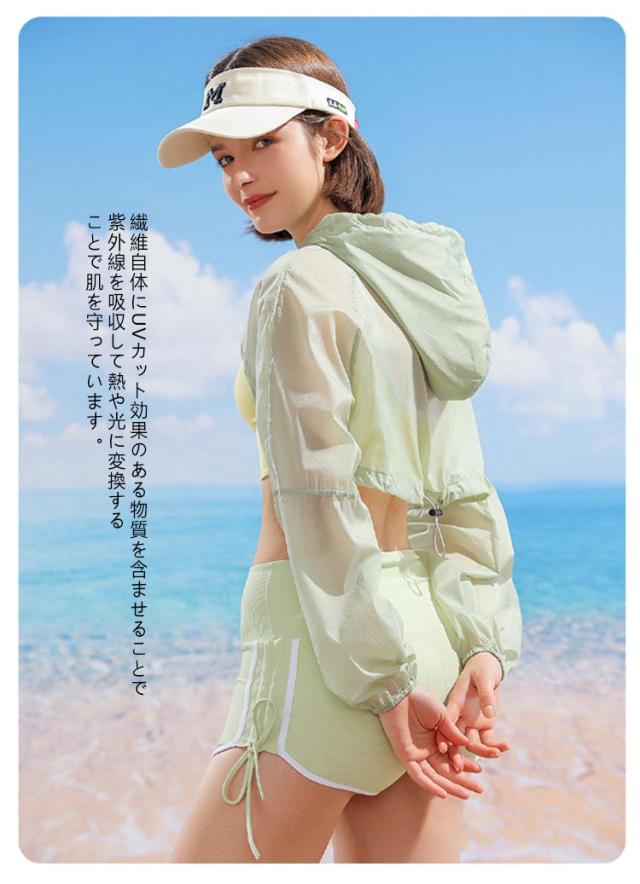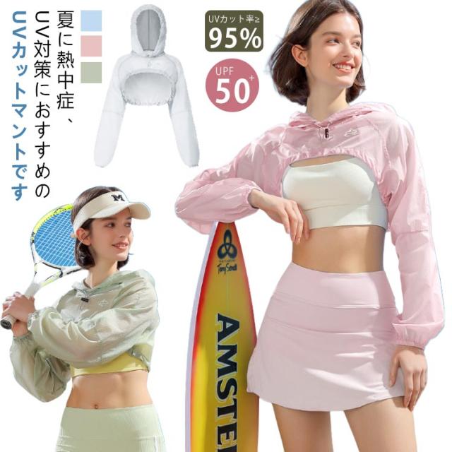 ケープ UVカット パーカー フード付き マント レディース 長袖 メンズ UVカット 冷感 ショート丈 超軽量 UV ラッシュガード 薄手 ポンチョ 吸汗 速乾 通気性 防水 日よけ アームカバー 着る シアー トップス シアー 透け感