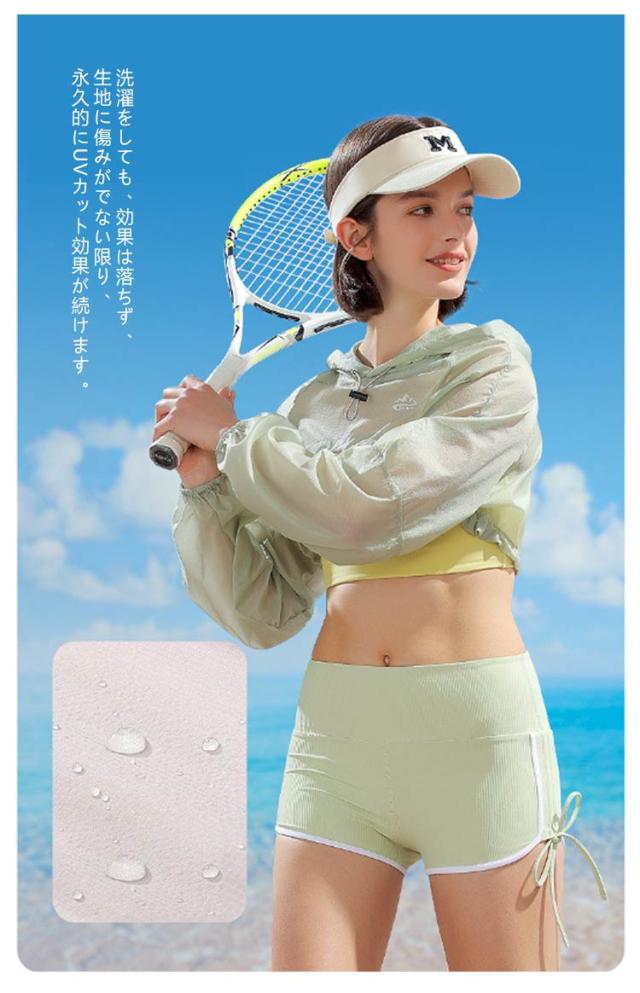 | 夏に熱中症、UV対策におすすめのUVカットマントです。 UPF50+ 接触冷感 吸湿速乾 UVカット率?95% 皺になりにくく、接触冷感のアイスシルク生地でちょっとしたゆったり感。 UVカット率も安心の「全カラーUV遮蔽率95%以上」 繊維自体にUVカット効果のある物質を含ませることで紫外線を吸収して熱や光に変換することで肌を守っています。 洗濯をしても、効果は落ちず、生地に傷みがでない限り、永久的にUVカット効果が続けます。 長く外出しなくてはいけない時も、紫外線から肌をしっかり守ります! 着丈はショート丈なので、風通しもよく服内の蒸れ感を軽減させます。 薄手素材なのでコンパクトサイズにできて持ち運びにも便利なところがうれしいポイント。 日焼け防止、速乾、擦り傷防止、保温性に優れており肌の露出対策にも最適です! 水着のコーデだけでなく、旅行、山登りなどの普段使いや、トレーニング、ランニングなどの陸上スポーツなど屋外での使用に最適なUVカットです。 | |