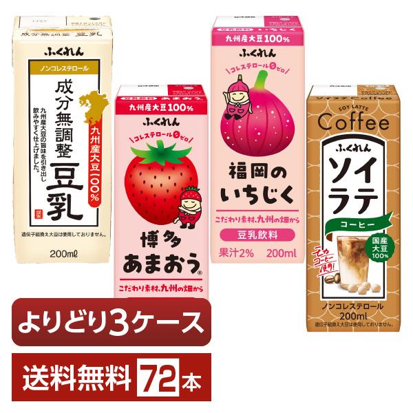 選べる ふくれん 豆乳 豆乳飲料 ソイラテ よりどりMIX 200ml 紙パック 72本 (24本×3箱) よりどり3ケース 送料無料