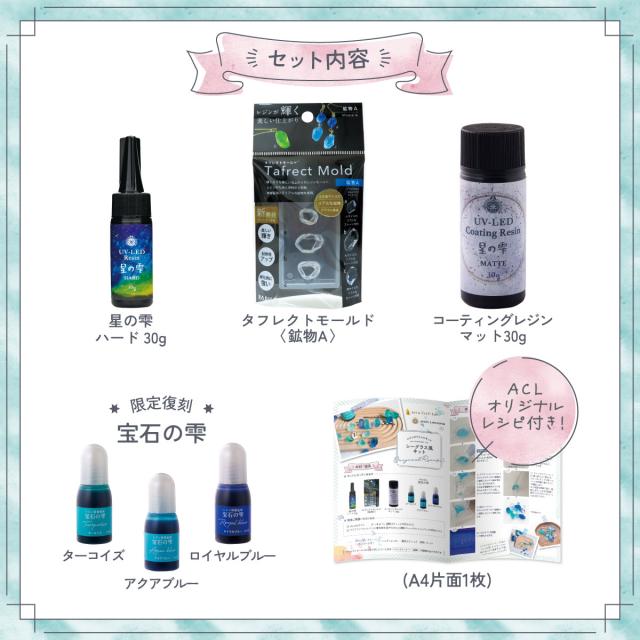 送料無料 (ACLオリジナルレシピ付) パジコ (PADICO) レジンスペシャルキット (シーグラス風キット) 星の雫/マットコーティング/宝石の雫 復刻色/タフレクトモールド・鉱物A