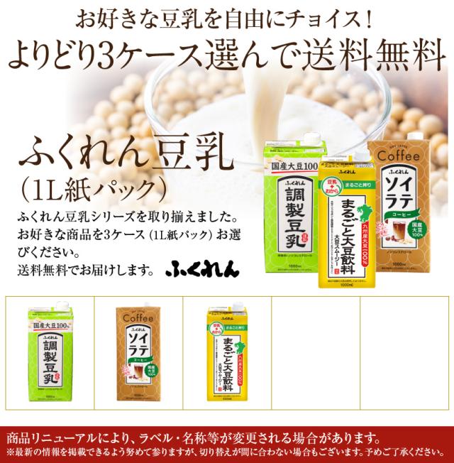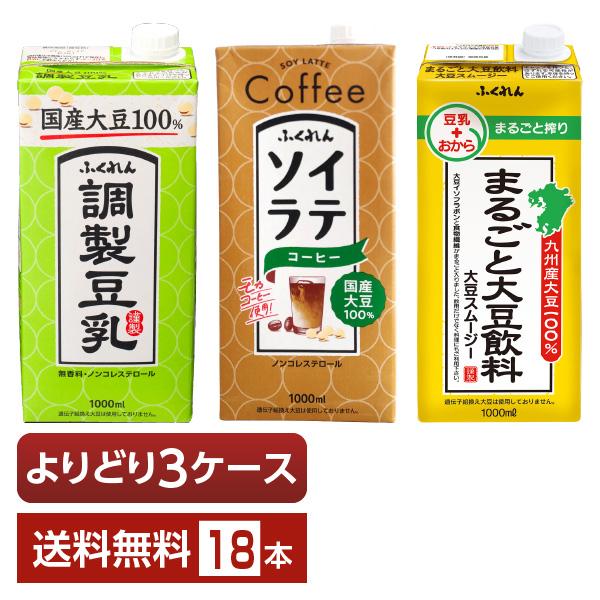 選べる ふくれん 豆乳 大豆飲料 ソイラテ よりどりMIX 1L 紙パック 1000ml 18本 (6本×3箱) よりどり3ケース 送料無料
