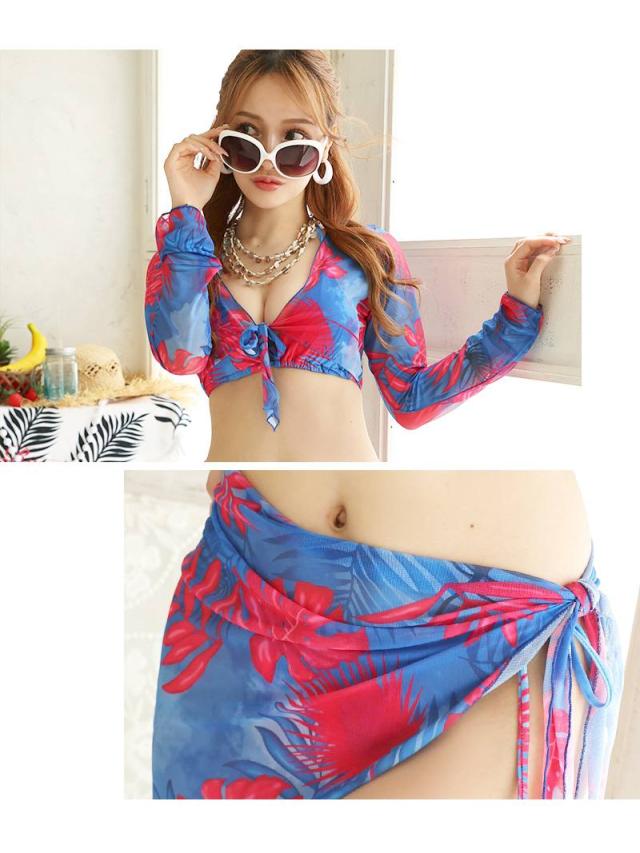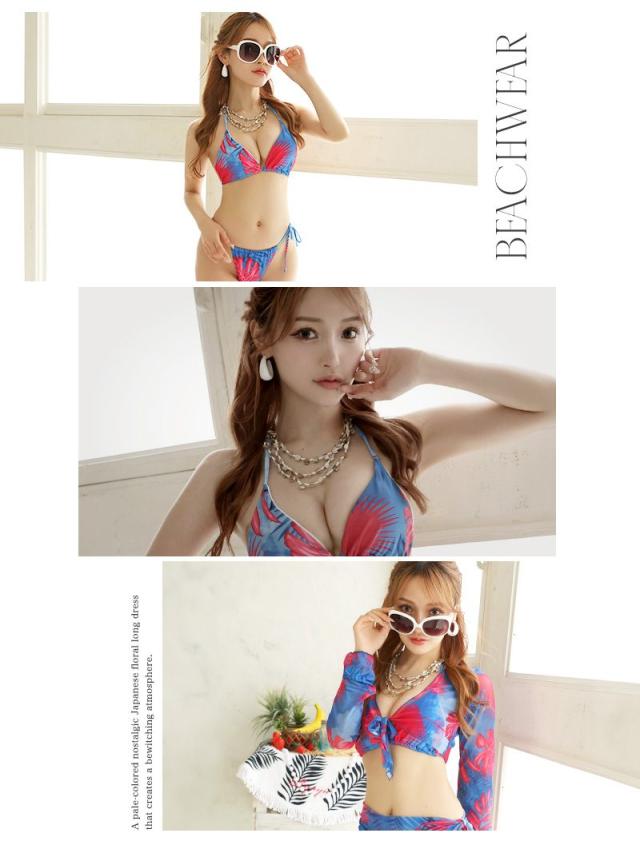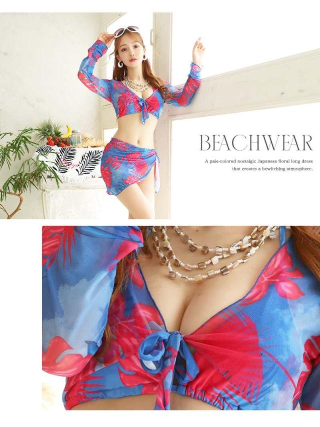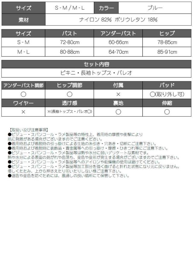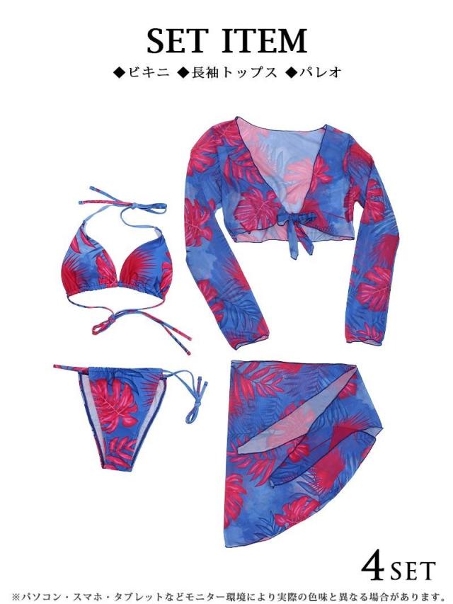 セット内容:ビキニ・長袖トップス・パレオ
