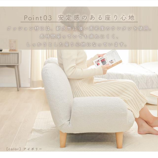 ソファ ブークレ生地 SUICA 一人掛けソファ 脚付 ローソファ コンパクトソファ リクライニング 淡色 モコモコ ふんわり シンプル おしゃれ ゆったり 日本製 国産 インテリア かわいい(代引不可)【送料無料】