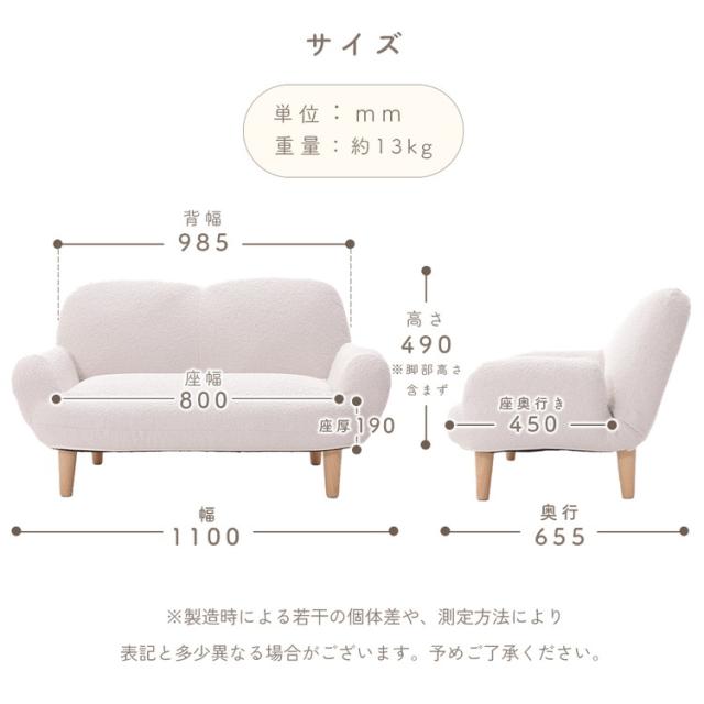 ソファ全体は丸みを帯びており、どの角度から見てもころんとしたフォルムが魅力的です。