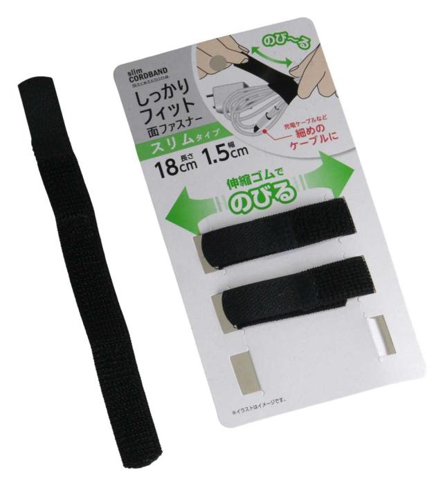 しっかりフィット面ファスナー スリムタイプ 1.5×18cm 3本入 (100円ショップ 100円均一 100均一 100均)