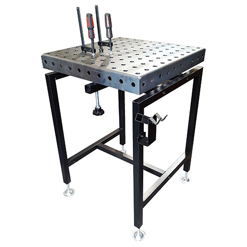 《溶接作業テーブル 溶接作業机 天板穴あき クランプ 材料置き場》