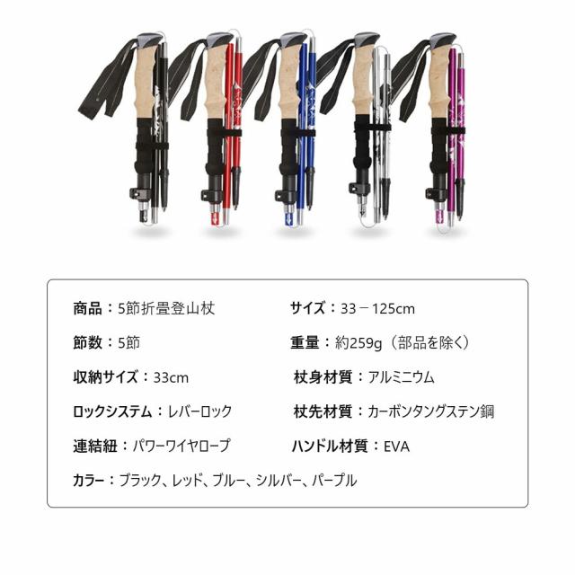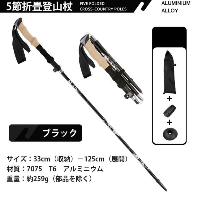 アルミ製 登山杖 軽量 5節折畳 伸縮調節可 収納ケース付き
