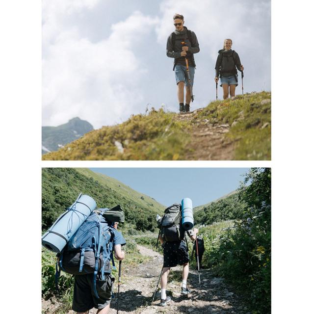 山登り、ハイキング、雪山、遠足、お出かけ、年寄りの補助など適用されているトレッキングポール。土地の形状によってキャップに合わせて、ダートや岩場は言わずもがな、湿地、雪道までも多数の地形で活躍します。