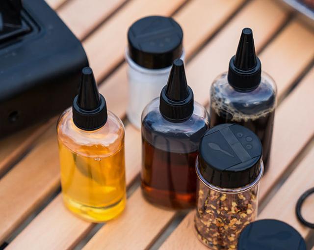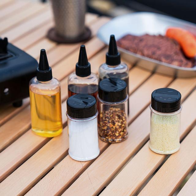 液体ミキシングボトル3本とガラスミキシングボトル3本が付属しています。すべての調味料(塩、コショウ、乾燥ハーブ、スパイス)に使用できます。