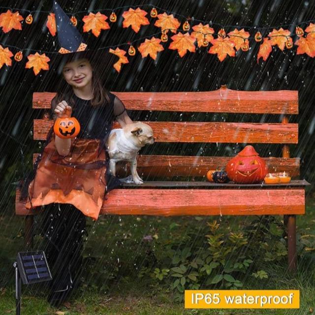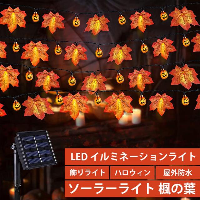 商品:ハロウィン 飾り 装飾 ライト 楓の葉 かぼちゃ ソーラーライト 6.5M 30LED 太陽充電