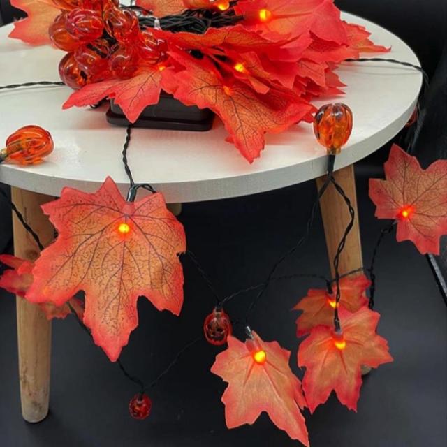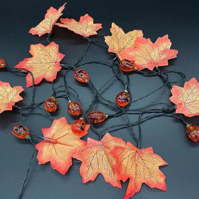 ハロウィン 感謝祭 クリスマス 飾り!「祭りの雰囲気」を作成しやすい、楽しんでリッラクスしましょう。かわいいなカボチャの飾りライトでハロウィンの雰囲気にぴったりです。本物の落ち葉に見え、夜は、ストリング上のLEDがどのような部屋にもアクセントを与え、あらゆる場面で暖かな雰囲気を醸し出します。