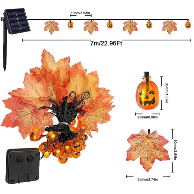 ソーラー イルミネーションライト led 楓の葉 ストリングライト 飾り 装飾 ライト ガーデンライト カエデの葉 かぼちゃ ライト 7M 50LED 飾りライト 8パターン点灯モード 家庭用インドア装飾 感謝祭 照明飾り おしゃれ 室内 屋外 庭 ハロウィン 新年 パーティ イベント