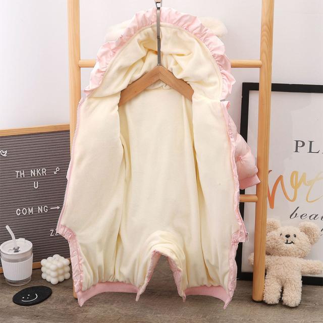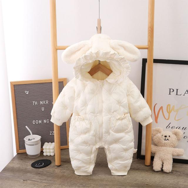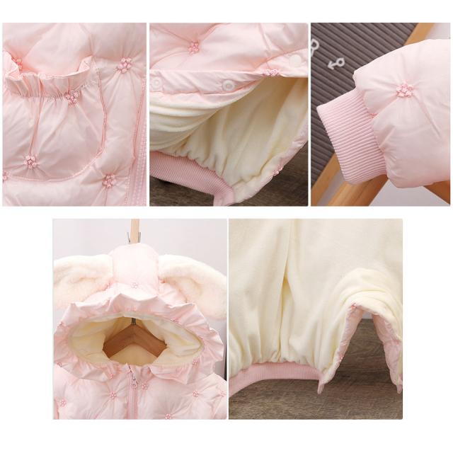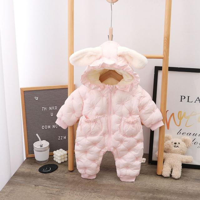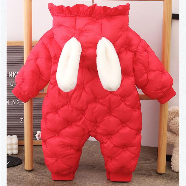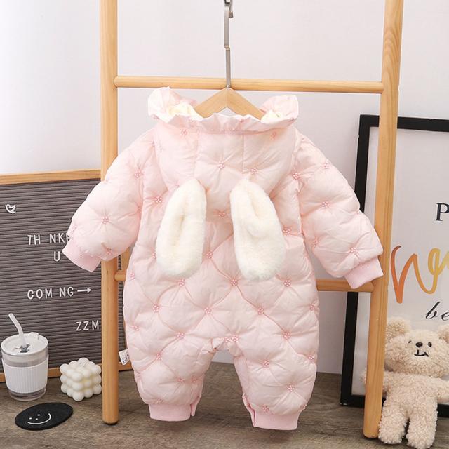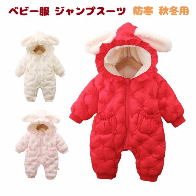 ベビー服 ジャンプスーツ カバーオール うさぎ耳 可愛い 長袖ロンパース ダウンコート 中綿コート フード付き 防寒 秋冬用 男の子 女の子 赤やん 防寒着 出産祝い ギフト かわいい