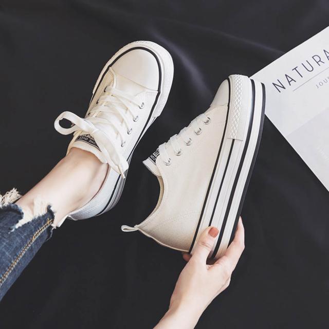 シンプルデザインのキャンバススニーカー。春、夏、秋、冬問わず履き心地は良いので、通勤、通学やデート、旅行、 お散歩やピクニック、ウォーキングなどちょっとした運動の時に履けるのも魅力的。