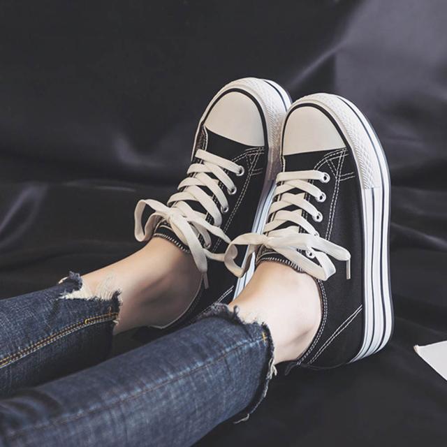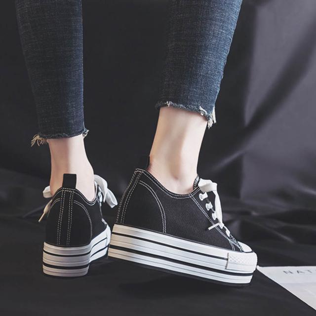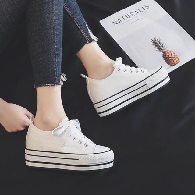 「動画あり」送料無料 キャンバス スニーカー カジュアルシューズ 8cm 身長アップ キャンバス レディース インヒール内蔵のため 厚底 歩きやすい おしゃれ靴 春 秋 通勤 通学