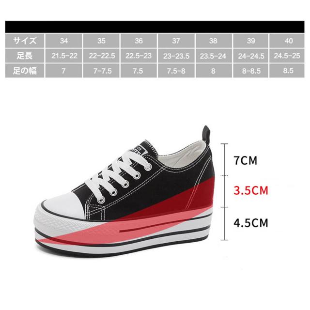 スニーカー カジュアルシューズ 8cm 身長アップ キャンバス レディース