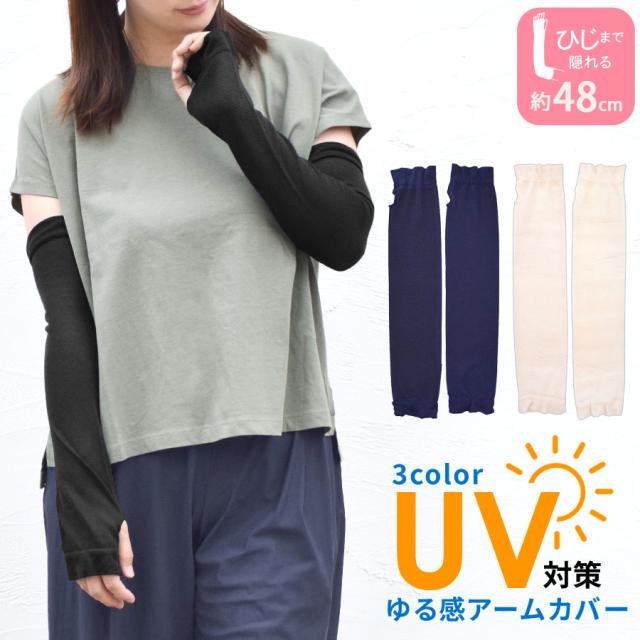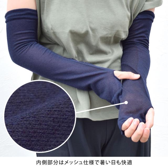 アームカバー レディース UV UVケア 指あり 指穴 内側メッシュ ロング 48cm スポーツ 日焼け対策 紫外線対策 日焼け予防 穴開き 通気性 シンプル カジュアル ラッシュガード 送料無料 (lc0034)