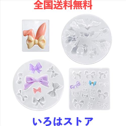サムコス 4個セット リボン シリコンモールド リボン四角型 ちょう結び ウサ耳リボン キャンディー型 uvレジン 粘土 ソフトモールド DIY