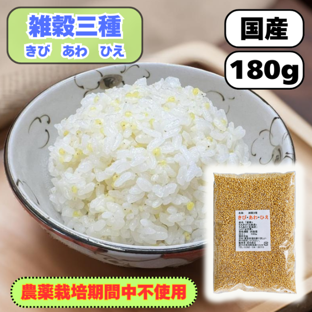 雑穀三種 きび・あわ・ひえ 180g 国産 農薬栽培期間中不使用 産地は変動します 送料無料 雑穀米 雑穀三種 小袋