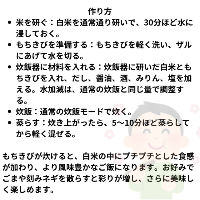召し上がり方 お米一合に対して大さじ1杯から、お好みでお召し上がりください。