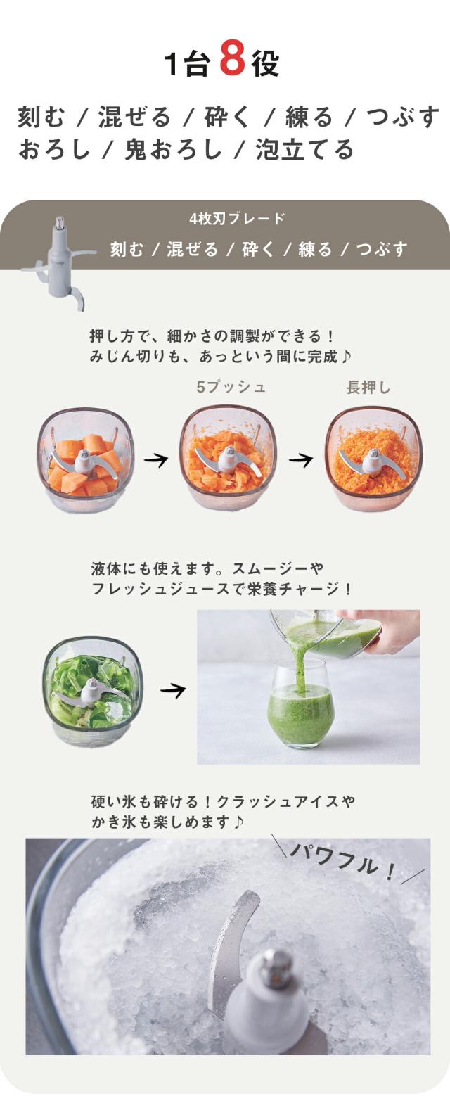 【特典!レシピ付】コードレス カプセルカッター ボンヌ フードプロセッサー 時短料理 離乳食 みじん切り 電動 大根おろし器 コンパクト 小型 ホイップ かき氷 ミキサー レコルト