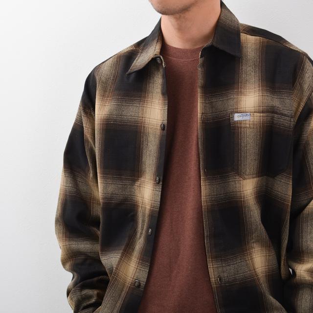 LA発のブランドCALTOP(キャルトップ)より、定番の長袖チェックシャツを入荷しました。 胸ポケットが付いたオンブレチェック柄ワークシャツです。シワや汚れに強いアクリルフランネル素材を使用。