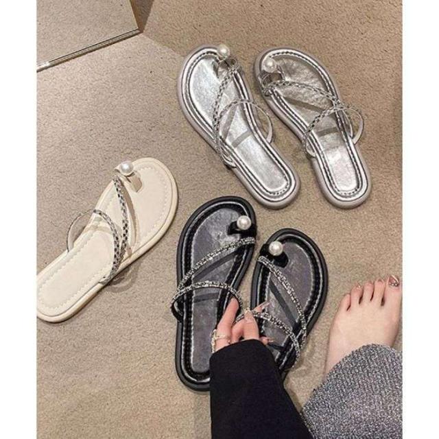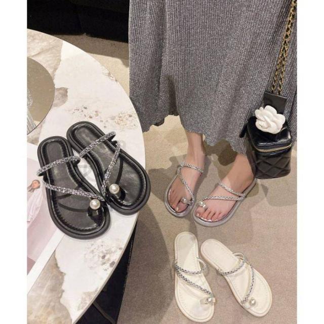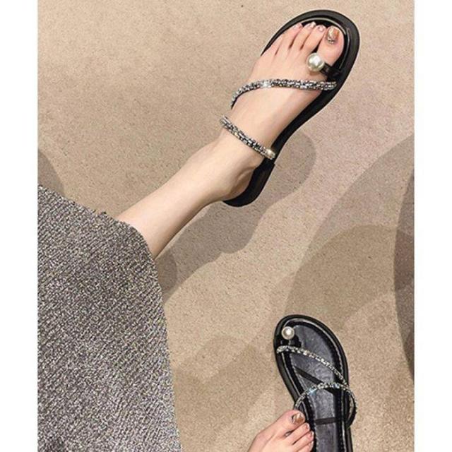 フラットサンダル レディース キラキラ ビジューサンダル きれいめぺたんこサンダル 歩きやすいサマーシューズ 美脚韓国風
