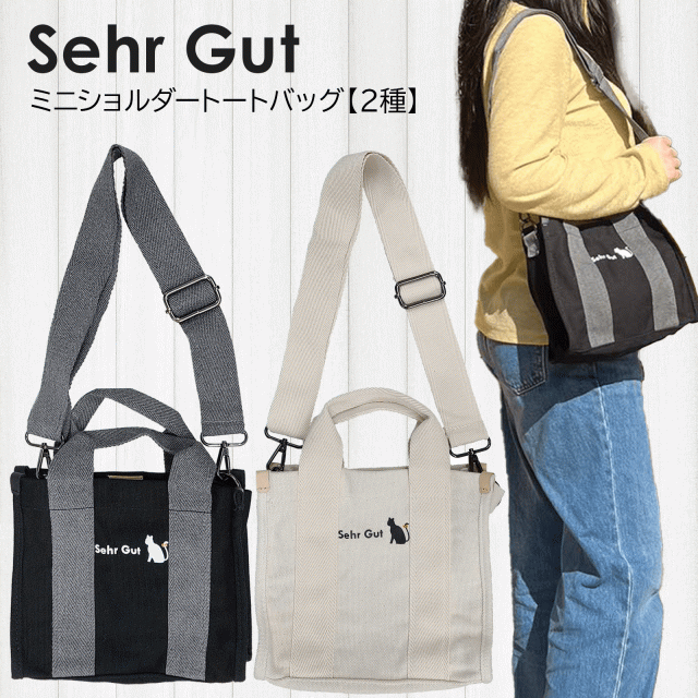 ★ 送料無料 ★ Sehr Gut ミニ ショルダーバッグ シンプル かわいい 猫 ネコ ねこ 肩掛け 通学 お出かけ 散歩