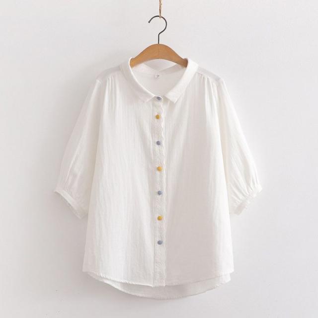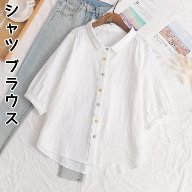 シャツブラウス レディース ブラウス シャツ 前開き チュニック 無地 白シャツ 半袖 夏 カジュアル 大人 可愛い