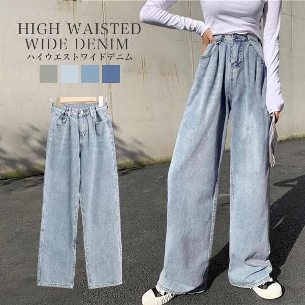 パンツ ズボン ボトムス デニム ジーンズ ジーパン Gパン ワイドデニム ワイドパンツ ガウチョパンツ ゆったり 体型カバー ハイウエスト フック ウエストシェイプ サイズ調整 タック ストレート 韓国ファッション オルチャン シルエット 脚長効果 美脚 スタイルアップ カジュアル ストリート きれいめ 無地 シンプル 可愛い かわいい 大人 おしゃれ お洒落 トレンド 人気 春 夏 秋 冬 青 グレー ブルー ネイビー 20代 30代 40代 50代